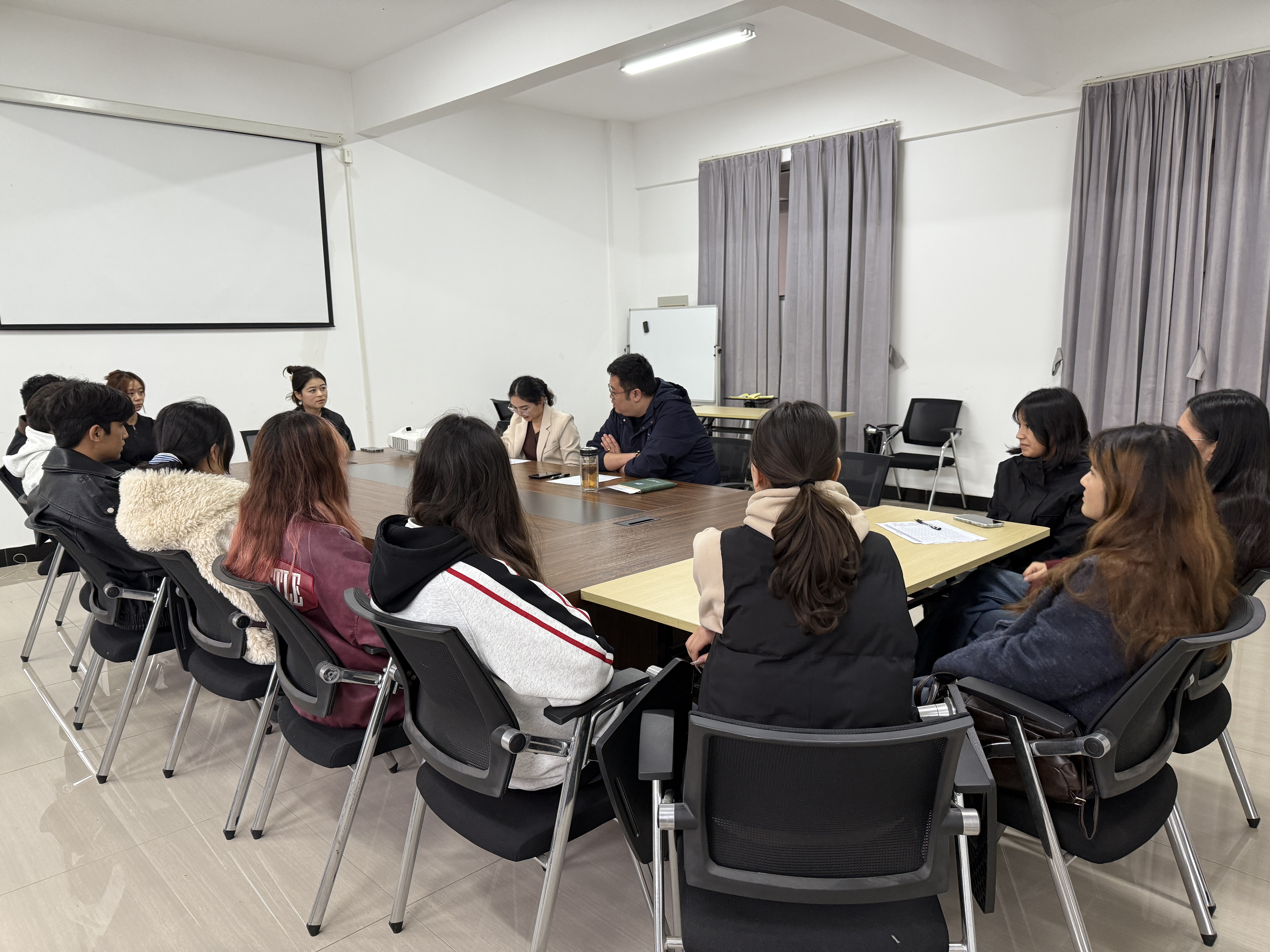 会上,相关辅导员以实际案例汇报了日常管理情况。
